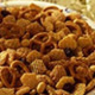 1. In a 13 x 9 x 2-inch baking pan coated with cooking spray, combine Kellogg's Crispix cereal, pretzels and pecans. Set aside 2. In large saucepan, over medium heat, combine margarine, sugar and honey. Bring mixture to a boil, and continue to boil 5 minutes, do not stir. Remove from heat and stir in vanilla. Pour syrup over cereal mixture, stirring until well coated. 3. Bake at 250 degrees F about 1 hour, stirring every 15-minutes. Let cool o cookie sheets. Store in airtight container.