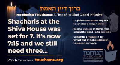 In response, Baltimorean Jeff Cohn developed T’Nuchamu, a new global initiative designed to address this issue in a simple and effective way. A designated family representative enters and updates levaya and shiva details, while registered volunteers are notified via email, SMS, or WhatsApp to help ensure a minyan.